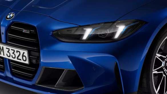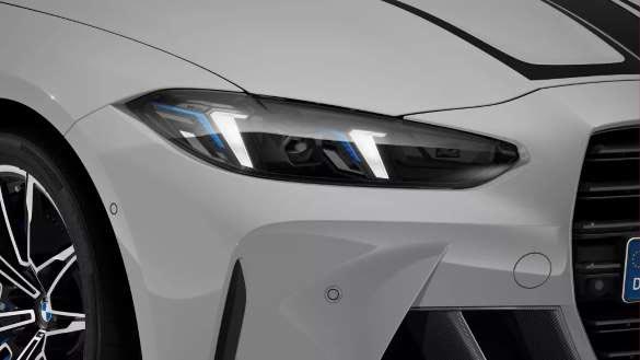 BMW M4 Competition Coupé interpretuje od nowa typową „czterooką” twarz BMW. Optyczny akcent stanowią w niej pionowe elementy świetlne w adaptacyjnych reflektorach diodowych. Funkcja matrycy zapewnia idealną widoczność w każdych warunkach.