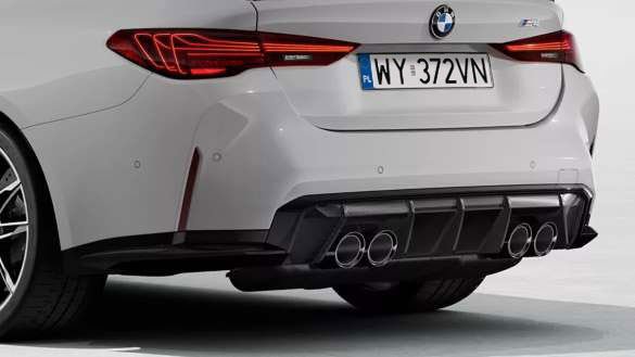 Pakiet karbonowych elementów zewnętrznych M nadaje BMW M wyrazisty, sportowy wygląd, w skład którego wchodzą aerodynamiczne dodatki w zderzaku, karbonowe obudowy lusterek, tylny spojler oraz dyfuzor.